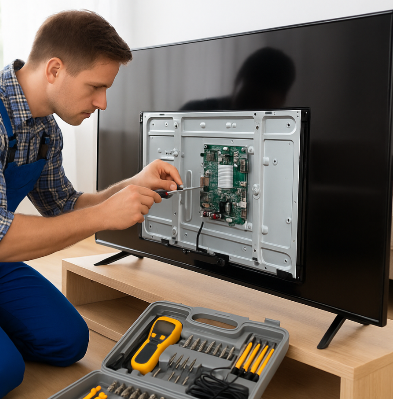Se o seu televisor apresenta falhas na imagem, som, liga mas não arranca, ou sofreu danos internos, confie em quem entende. Trabalhamos com peças de qualidade e compromisso com a sustentabilidade reparar é evitar o desperdício de equipamentos eletrónicos ainda com solução.
